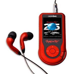 Ouça seus artistas e bandas favoritos com o MP4 player personalizado Rock in Rio. Este MP4 player da Growing possui rádio FM, 7 equalizadores pré-ajustados, tela de 1,8 polegadas, além de acompanhar um CD com vídeo de apresentação Rock in Rio. Reproduzir músicas, vídeos e imagens, além de permitir gravar áudio. Utiliza bateria interna de lítio recarregável, e tem 4GB de memória interna.