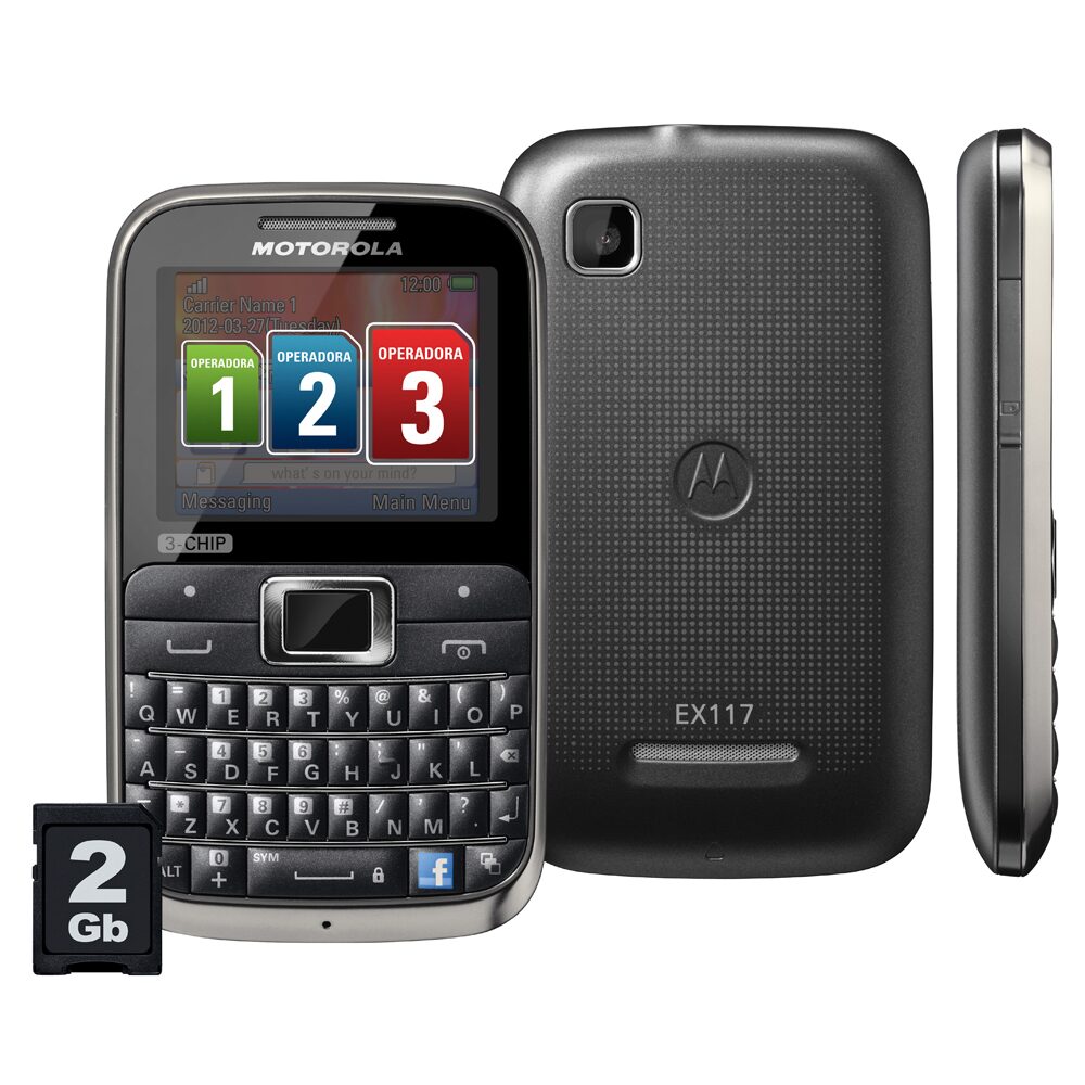 Motorola Motokey 3 Chip EX117, ou seja, suporta o uso de até 3 chips no mesmo aparelho.